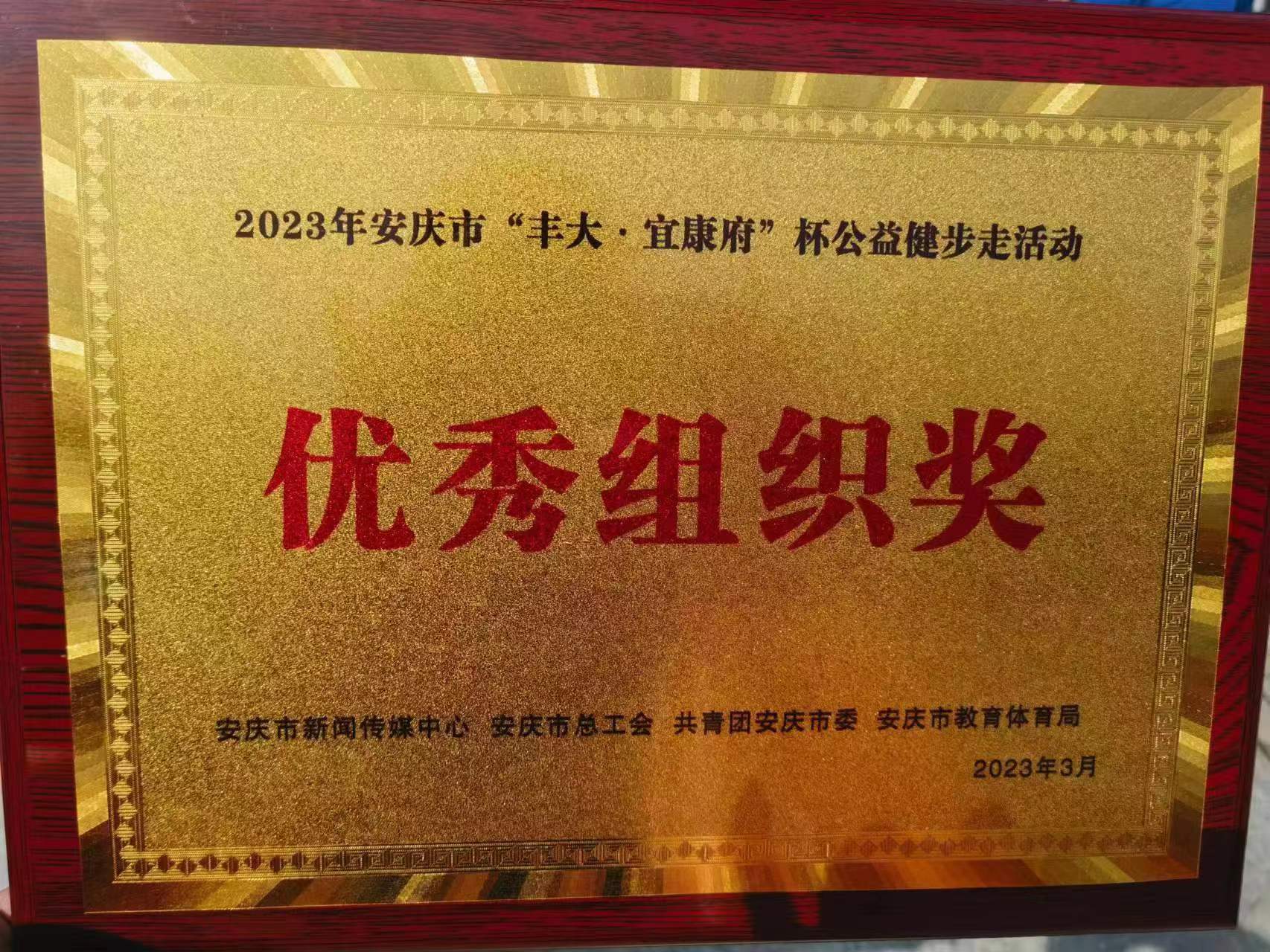 為更好的豐富廣大職工文體生活,增進(jìn)職工工作凝聚力,推進(jìn)全民健身國(guó)家戰(zhàn)略和健康中國(guó)戰(zhàn)略,增強(qiáng)全民身體素質(zhì)。3月25日上午,公司組織廣大職工參加了由市新聞傳媒中心、市總工會(huì)、團(tuán)市委、市教體局聯(lián)合開(kāi)展2023年安慶市“豐大·宜康府”杯公益健步走活動(dòng),與集團(tuán)同事組建“金融控股集團(tuán)”方陣?;顒?dòng)中,大家步調(diào)一致,健步快走,整個(gè)方陣第一個(gè)走完5公里路程到達(dá)終點(diǎn),獲得主辦方頒發(fā)的“優(yōu)秀組織獎(jiǎng)”。(辦公室 蘇傳云)